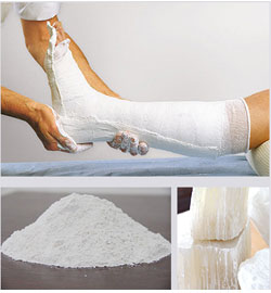 醫(yī)用石膏 一般是指熟石膏。在牙科可做牙領(lǐng)的印象材料,又剛做模型材料。其他品種還有:(1}硬石膏,適用f制作金材料的模型假牙,其精確度高:(2)超硬石膏,可用于制做精密的金材料或不銹鋼材料的印模;(3)可溶性石膏,在普通石膏里加人炸一y的淀粉而成,制作全口假牙的印模精確度高;(4}可植人體內(nèi)的亞硫酸鈣[ C:a}C3, ) ,是第一種被廣泛研究的生物陶瓷。主要用于骨缺損腔充填,生物相容性好,可被組織吸收并被新骨所替換。但因易于破碎,而且在體內(nèi)強(qiáng)度降低很快,因此未能在臨床上獲得廣泛應(yīng)用